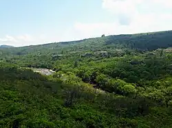 The Cerrado is characterized by unique vegetation types.[5] It is composed of a shifting mosaic of habitats, with the savanna-like cerrado itself on well-drained areas between strips of gallery forest (closed canopy tall forest) which occur along streams.[6][5] Between the cerrado and the gallery forest is an area of vegetation known as the wet campo with distinct up- and downslope borders where tree growth is inhibited due to wide seasonal fluctuations in the water table.[5][6]