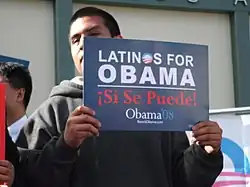 Arizona became the first state to pass a bill that was designed to keep the UFW out of their state; this would criminalize boycotts and make union elections among farm-workers almost impossible.[209] In response, Chavez drove to Arizona and demanded a meeting with Governor Jack Williams, who refused.[210] They subsequently launched a campaign to gain a recall election to remove Williams from office.[211] This started the UFW's first major farm-worker campaign outside California.[212] Farmworkers rallied outside Williams' office while Chavez embarked on a fast in the Santa Rita Center, a hall used by a local Chicano group.[213][214] On the nineteenth day of his fast, Chavez was hospitalized.[215] He then broke the fast at a memorial Mass on the anniversary of Robert Kennedy's death, where he was joined by the folk singer Joan Baez.[216] It was during the Arizona campaign that the UFW started using the slogan "Si Se Puede" ("It Can be Done"), which subsequently became closely associated with it.[217]