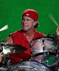 Chad Smith[1] (born October 25, 1961)[2] is an American musician who is the drummer of the rock band the Red Hot Chili Peppers. Smith has played with the Chili Peppers since 1988, appearing on ten of the band's studio albums and becoming the band's longest-serving drummer in its history. The group was inducted into the Rock and Roll Hall of Fame in 2012. Smith is also the drummer of the hard rock supergroup Chickenfoot, formed in 2008, and of the all-instrumental outfit Chad Smith's Bombastic Meatbats, formed in 2007. He worked with the Chicks on Taking the Long Way, an album that won five Grammy Awards in 2007.