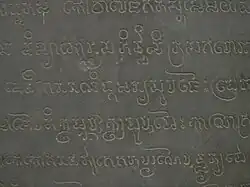Several granite tablets and inscriptions from My Son, Tra Kieu, Hue, Khanh Hoa dated 653–687 report a Cham king named Jaya Prakāśadharma who ascended the throne of Champa as Vikrantavarman I (r. 653–686). Prakāśadharma had thorough knowledge of Sanskrit learning, Sanskrit literature, and Indian cosmology. He authorized many constructions of religious sanctuaries at My Son and several building projects throughout the kingdom, laying down the foundations for the Champa art and architectural styles.[53] He also sent many embassies regularly to the Tang Empire and neighbouring Khmer. The Chinese reckoned Champa during the 7th century as the chief tributary state of the South, on par with the Korean kingdoms of Koguryŏ in the Northeast and Baekje in the East – "though the latter was rivaled by Japan."[54]