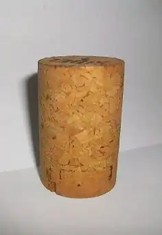 A Champagne cork before usage. Only the lower section, made of top-quality pristine cork, will be in contact with the Champagne.