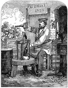 Corking a Champagne Bottle: 1855 engraving of the manual method