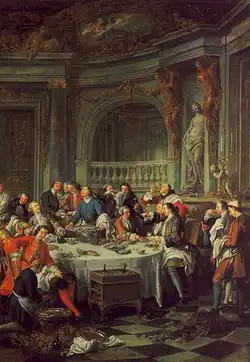 Jean François de Troy's 1735 painting Le Déjeuner d'Huîtres (The Oyster Luncheon) is the first known depiction of Champagne in painting.