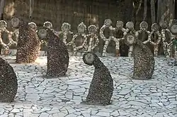 By 1971, 11–15% of Chandigarh’s population was living in illegal settlements.[115][116] Transit colonies for slum-dwellers were set up on the margins of the city, becoming permanent with time.[116] In the 1970s, city officials discovered a sculpture park built by public works employee and artist Nek Chand who had been secretly building it since 1957 using various materials—rocks found in the hills and waterbodies around the city, discarded materials from pre-existing villages, and waste generated by the city’s construction—on a piece of forest land adjacent to the capitol complex.[117][118] The park was named 'Rock Garden' and inaugurated in 1976, receiving national and international attention in the 1980s.[119] In the late 1980s and 1990s, attempts by the city authorities to demolish the garden were thwarted by public protests.[120]