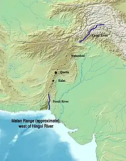 The exact extent of the acquired territories is unknown.[98][b] A modest interpretation limits the extension to the western Indus Valley, including the coast of eastern Gedrosia (Balochistan) up to the Malan mountain raing (Hingol river),[99][100] the Punjab,[100][101][u] and the eastern part of Paropamisadae (Gandhara). Arachosia (Kandahar, present-day Afghanistan), is a possibility,[102][103][104] while Aria (present-day Herat, Afghanistan) is also often mentioned, but rejected by contemporary scholarship.[v] Tarn, writing in 1922,[100] and Coningham and Young,[14] have questioned the inclusion of eastern Afghanistan (Kabul-Kandahar), Coningham and Young noting that "a growing number of researchers would now agree that the Ashokan edicts may have represented 'an area of maximum contact rather than streamlined bureaucratic control'."[105] Coningham & Young also question the extent of control over the lower Indus Valley, following Thapar, noting that this may have been an area of peripheral control.[105] Raymond Allchin also notes the absence of major cities in the lower Indus valley.[106][i]