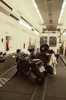 The tunnel is operated by Getlink (formerly Eurotunnel) and is used by Eurostar high-speed passenger trains, LeShuttle services for road vehicles,[9] and freight trains.[10] In 2017, Eurostar trains carried 10.3 million passengers, freight trains transported 1.2 million tonnes (2.6 billion pounds) of freight, and LeShuttle trains moved 10.4 million passengers in 2.6 million cars and 51,000 coaches, and 1.6 million heavy goods vehicles carrying 21.3 million tonnes (47 billion pounds) of freight.[11] That compares with 11.7 million passengers, 2.2 million cars, and 2.6 million heavy goods vehicles transported by sea through the Port of Dover.[12]