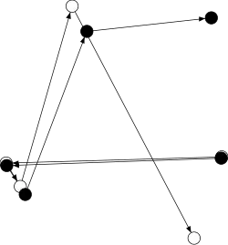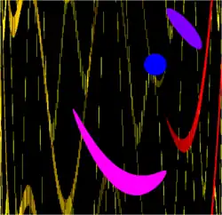 For a chaotic system to have dense periodic orbits means that every point in the space is approached arbitrarily closely by periodic orbits.[32] The one-dimensional logistic map defined by x → 4 x (1 – x) is one of the simplest systems with density of periodic orbits. For example, → → (or approximately 0.3454915 → 0.9045085 → 0.3454915) is an (unstable) orbit of period 2, and similar orbits exist for periods 4, 8, 16, etc. (indeed, for all the periods specified by Sharkovskii's theorem).[34]