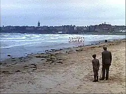 During a 1978 funeral service in London in honour of the life of Harold Abrahams, presided over by his former colleague Lord Andrew Lindsay, there is a flashback to his youth, when he was running along a beach with a group of athletes.