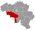 Charleroi (UK: /ˈʃɑːrlə.rwʌ/, US: /-rɔɪ, -rwɑː/,[2][3] French: [ʃaʁləʁwa] ; Walloon: Tchålerwè [tʃɑːlɛʀwɛ]) is a city and a municipality of Wallonia, located in the province of Hainaut, Belgium. It is the largest city in both Hainaut and Wallonia. The city is situated in the valley of the Sambre, in the south-west of Belgium, not far from the border with France. By 1 January 2008, the total population of Charleroi was 201,593.[4] The metropolitan area, including the outer commuter zone, covers an area of 1,462 square kilometres (564 sq mi) with a total population of 522,522 by 1 January 2008, ranking it as the 5th most populous in Belgium after Brussels, Antwerp, Liège, and Ghent.[4][5] The inhabitants are called Carolorégiens or simply Carolos.