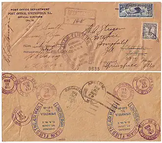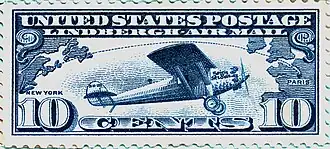 - ^ 10-cent "Lindbergh Air Mail" issue (1927) Archived September 28, 2013, at the Wayback Machine US Stamp Gallery