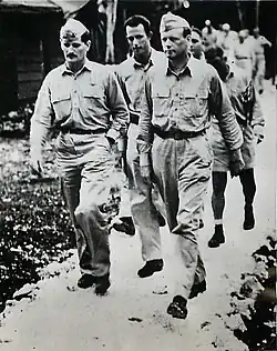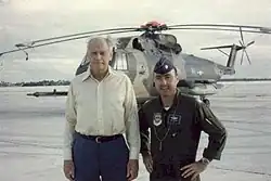 Following the Japanese attack on Pearl Harbor and German declaration of war against the U.S., Lindbergh avidly supported the American war effort but was rejected for active duty, as Roosevelt refused to restore his colonel's commission.[9] Instead he flew 50 combat missions in the Pacific Theater as a civilian consultant and was unofficially credited with shooting down an enemy aircraft.[10][11] In 1954, President Dwight Eisenhower restored his commission and promoted him to brigadier general in the U.S. Air Force Reserve.[12] In his later years, he became a Pulitzer Prize-winning author, international explorer and environmentalist, helping to establish national parks in the U.S. and protect certain endangered species and tribal people in both the Philippines and east Africa.[13] After retiring in Maui, Lindbergh died of lymphoma in 1974 at the age of 72.