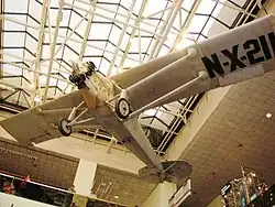 The group tried to buy an "off-the-peg" single or multiengine monoplane from Wright Aeronautical, then Travel Air, and finally the newly formed Columbia Aircraft Corporation, but all insisted on selecting the pilot as a condition of sale.[53][54][55] Finally, the much smaller Ryan Airline Company (later called the Ryan Aeronautical Company) of San Diego agreed to design and build a custom monoplane for $10,580, and on February 25, 1927, a deal was formally closed.[56] Dubbed the Spirit of St. Louis, the fabric-covered, single-seat, single-engine high-wing monoplane was designed jointly by Lindbergh and Ryan's chief engineer Donald A. Hall.[57] The Spirit flew for the first time just two months later, and after a series of test flights Lindbergh took off from San Diego on May 10. Lindbergh went first to St. Louis, then on to Roosevelt Field on New York's Long Island.[58]