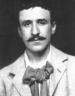 He changed the spelling of his name from 'McIntosh' to 'Mackintosh' for unknown reasons, as his father did before him, around 1893.[5] Confusion continues to surround the use of his name with 'Rennie' sometimes incorrectly substituted for his first name of 'Charles'. The modern use of 'Rennie Mackintosh' as a surname is also incorrect and he was never known as such in his lifetime;[6] 'Rennie' being a middle name (his mother's maiden name) which he used often in writing his name. Signatures took various forms including 'C.R. Mackintosh' and 'Chas. R. Mackintosh.' The usage of "Rennie Mackintosh" to refer to him is therefore incorrect and he should instead be referred to as "Charles Rennie Mackintosh" or "Mackintosh". Mackintosh is also sometimes referred to affectionately as 'Toshie', a nickname seen in correspondence and other contemporary literature written by friends and family members.[6]