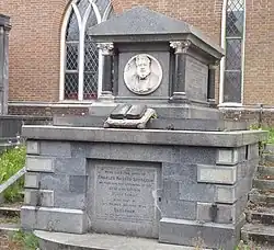 He became increasingly unwell and in May 1891 he was forced 'to rest'. In 1891 he went to rest in Menton and remained there for three months. During this period he wrote 180 pages of commentary.[68] However, he did not recover and died at the age of 57, while still in Menton, from gout and congestion of the kidneys.[69] From May 1891 until his death in January 1892, he received 10,000 letters of 'condolence, resolutions of sympathy, telegrams of enquiry'.[68]