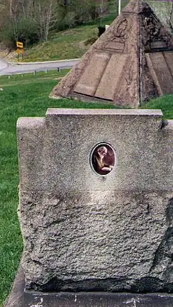 An associate of Russell stated that Russell's body at age 64 was more worn out than that of his father who died at age 84.[66] He was buried outside of Pittsburgh in United Cemetery, Ross Township, Pennsylvania. The gravesite is marked by a headstone. Nearby stood a 7-foot-tall (2.1 m) pyramid memorial erected by the Watch Tower Bible and Tract Society in 1921.[67][68] The pyramid memorial was vandalized and subsequently removed in September 2021.[58]