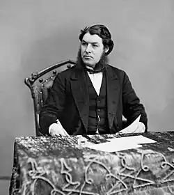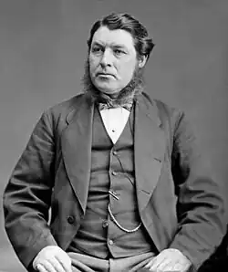 The leader of the Conservative Party of Nova Scotia, James William Johnston, a fellow Baptist and family friend of the Tuppers, encouraged Charles Tupper to enter politics.[6] In 1855 Tupper ran against the prominent Liberal politician Joseph Howe for the Cumberland County seat in the Nova Scotia House of Assembly.[6] Joseph Howe would be Tupper's political opponent several times in years to come.