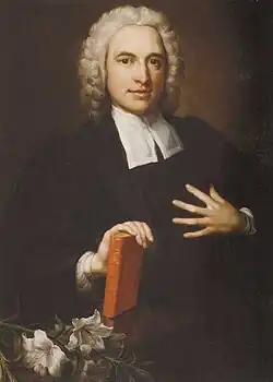 Charles Wesley (18 December 1707 – 29 March 1788) was an English Anglican cleric and a principal leader of the Methodist movement. Wesley was a prolific hymnwriter who wrote over 6,500 hymns during his lifetime.[2] His works include "And Can It Be", "O for a Thousand Tongues to Sing", "Christ the Lord Is Risen Today", "Love Divine, All Loves Excelling", the carol "Hark! The Herald Angels Sing", and "Lo! He Comes With Clouds Descending".