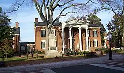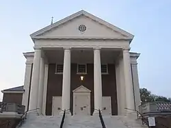 The first Catholic church in Charlottesville was the Church of the Paraclete, built in 1880 and erected as a parish in 1896. In 1906 the church building was renovated and the parish was renamed to Holy Comforter. A second parish was erected for the growing Catholic population in 1976 called the Church of the Incarnation.[45] In 1967 a Dominican-run parish for Catholic students at the University of Virginia was dedicated (replacing a Newman Center begun in 1943), and named St. Thomas Aquinas University Parish.[46] The first Mass of record in Charlottesville was celebrated in the parlor of F. M. Paoli's residence, presumably on Random Row, now West Main Street. Services were held for about 12 years after that in the Town Hall. The presiders were priests who came from St. Francis Assisi Church in Staunton and then traveled on to other missions in the area.[47]