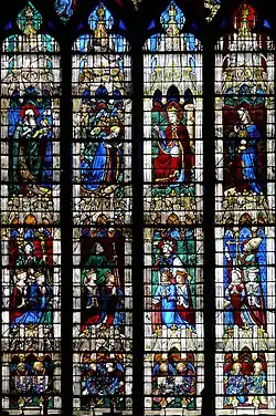 • 1210–1250 – Major installation of stained glass windows in choir and nave installed[24]
