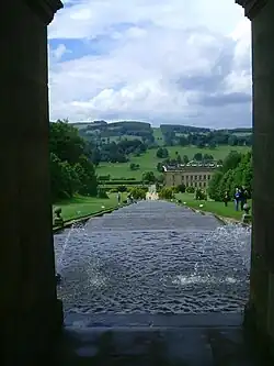 ![]() The south front of Chatsworth House, facing the Cascade and the Emperor Fountain | |