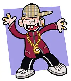 Characters described as "chavs" have been featured in numerous British television programmes, as well as films. The character, clothing, attitude and musical interests of Lauren Cooper and her friends in the BBC comedy series, The Catherine Tate Show, have been associated with the chav stereotype.[31] The character Ali G, created by Sacha Baron Cohen originally for The 11 O'Clock Show and eventually gaining more popularity due to the Da Ali G Show, is described as using "the chav's putative anti-intellectuality to critique radical political stances".[32] The BBC comedy series Little Britain features the character Vicky Pollard (portrayed by Matt Lucas), a parody of a teenage female chav. In the British television series Misfits, the character of Kelly Bailey is presented as a stereotypical chav.[33] Lauren Socha, the actress who portrays Kelly, has described the character as being "a bit chavvy".[34] The Times has referred to the character as "[a] chavvish girl",[35] and the character has been said to possess a "chav accent".[36]