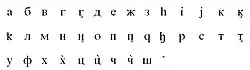 | У у | Уь уь | Ф ф | Х х | Хь хь | Хӏ хӏ | Ц ц |