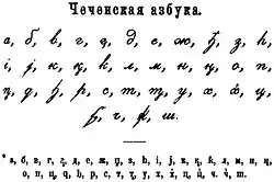 - ^ Чеченская азбука - نوٓخچیی آلفبٰا (Нохчий алфба) (1925) https://archive.org/details/chechen-abat/page/n27/mode/2up