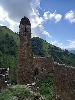 In the 14th and 15th centuries, there was frequent warfare between the Chechens, Tamerlane and Tokhtamysh, culminating in the Battle of the Terek River (see Tokhtamysh–Timur war). The Chechen tribes built fortresses, castles, and defensive walls, protecting the mountains from the invaders (see Vainakh tower architecture). Part of the lowland tribes were occupied by Mongols. However, during the mid-14th century a strong Chechen Princedom called Simsim emerged under Khour II, a Chechen king that led the Chechen politics and wars. He was in charge of an army of Chechens against the rogue warlord Mamai and defeated him in the Battle of Tatar-tup in 1362. The kingdom of Simsim was almost destroyed during the Timurid invasion of the Caucasus, when Khour II allied himself with the Golden Horde Khan Tokhtamysh in the Battle of the Terek River. Timur sought to punish the highlanders for their allegiance to Tokhtamysh and as a consequence invaded Simsim in 1395.[16]