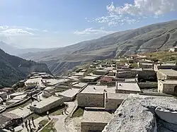 The Caucasian Epipaleolithic and early Caucasian Neolithic era saw the introduction of agriculture, irrigation, and the domestication of animals in the region.[13] Settlements near Ali-Yurt and Magas, discovered in modern times, revealed tools made out of stone: stone axes, polished stones, stone knives, stones with holes drilled in them, clay dishes, etc. Settlements made out of clay bricks were discovered in the plains. In the mountains there were settlements made from stone and surrounded by walls; some of them dated back to 8000 BC.[15] This period also saw the appearance of the wheel (3000 BC), horseback riding, metal works (copper, gold, silver, iron), dishes, armor, daggers, knives and arrow tips in the region. The artifacts were found near Nasare-Cort, Muzhichi, Ja-E-Bortz (alternatively known as Surkha-khi), Abbey-Gove (also known as Nazran or Nasare).[15]