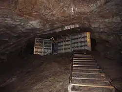 "Cheddaring" refers to an additional step in the production of cheddar cheese where, after heating, the curd is kneaded with salt, cut into cubes to drain the whey, and then stacked and turned.[17] Strong, extra-mature cheddar, sometimes called vintage, needs to be matured for 15 months or more. The cheese is kept at a constant temperature, often requiring special facilities. As with other hard cheese varieties produced worldwide, caves provide an ideal environment for maturing cheese; still, today, some cheddar is matured in the caves at Wookey Hole and Cheddar Gorge. Additionally, some versions of cheddar are smoked.[19][20]