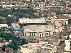 The previous owner Abramovich and the club's then executive board determined that a larger stadium is necessary in order for Chelsea to stay competitive with rival clubs who have significantly larger stadia, such as Arsenal and Manchester United.[113] Owing to its location next to a main road and two railway lines, fans can only enter Stamford Bridge via the Fulham Road, which places constraints on expansion due to health and safety regulations.[114] The club have consistently affirmed their desire to keep Chelsea at their current home,[115][116] but have nonetheless been linked with a move to various nearby sites, including the Earls Court Exhibition Centre, Battersea Power Station and the Chelsea Barracks.[117] In October 2011, a proposal from the club to buy back the freehold to the land on which Stamford Bridge sits was voted down by Chelsea Pitch Owners shareholders.[118] In May 2012, the club made a formal bid to purchase Battersea Power Station, with a view to developing the site into a new stadium,[119] but lost out to a Malaysian consortium.[120] The club subsequently announced plans to redevelop Stamford Bridge into a 60,000-seater stadium,[121] and in January 2017 these plans were approved by Hammersmith and Fulham council.[122] However, on 31 May 2018, the club released a statement saying that the new stadium project had been put on hold indefinitely, citing "the current unfavourable investment climate".[123]