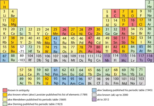 164. ^ Weeks, Mary Elvira (January 1932). "The discovery of the elements. I. Elements known to the ancient world". Journal of Chemical Education. 9 (1): 4. Bibcode:1932JChEd...9....4W. doi:10.1021/ed009p4.