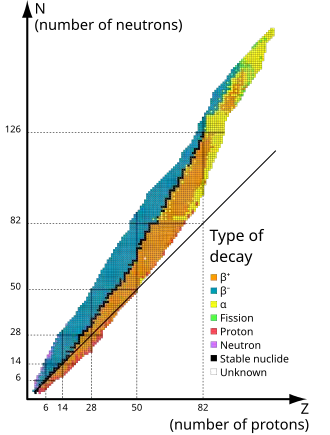All elements have radioactive isotopes (radioisotopes),[35] but many of these radioisotopes are not found in nature due to a low half life. Radioisotopes typically decay into other elements via alpha decay, beta decay, or inverse beta decay; some isotopes of the heaviest elements also undergo spontaneous fission. Isotopes that are not radioactive, are termed "stable" isotopes. Isotopes with even numbers of protons, even numbers of neutrons, or both, tend to be more stable as like particle can pair up with like.[36][37] This pairing effect allows the identical particles to align with opposite spins, increasing the binding energy.[38]