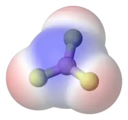 Ammonia, NH3, is a molecule whose three N−H bonds have only a slight polarity (toward the more electronegative nitrogen atom). The molecule has two lone electrons in an orbital that points towards the fourth apex of an approximately regular tetrahedron, as predicted by the VSEPR theory. This orbital is not participating in covalent bonding; it is electron-rich, which results in a powerful dipole across the whole ammonia molecule.