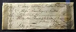 - ^ "Newly Discovered Oldest Surviving American chequebook". rarebookbuyer.com. 12 July 2014. Archived from the original on 26 December 2015. Retrieved 23 January 2018.