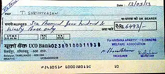 - ^ "India at the bottom of the list: Least reduction in usage of bank cheques". 5 June 2019. Retrieved 18 December 2022.