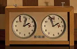 Time is controlled using a chess clock with two displays, one for each player's remaining time. Analog chess clocks have been largely replaced by digital clocks, which allow for time controls with increments.