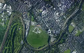 There is one main tier of local government covering Chester, at unitary authority level, being Cheshire West and Chester Council.[33] Much of the Chester urban area is an unparished area, but some of the suburbs are included in civil parishes such as Great Boughton and Upton-by-Chester and there is also a small parish in the centre of the city called Chester Castle.[34][35]
