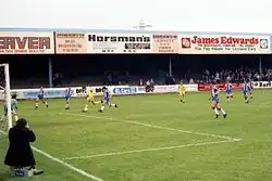 After a few years of playing only friendly and occasional cup matches, Chester joined The Combination League in 1890.[8] In 1898 the club moved to The Old Showground, but were forced to leave a year later when the ground was demolished to make way for housing, leaving the club temporarily disbanded.[8] In 1901, however, they moved to Whipcord Lane;[8] again, their stay was only brief, as they moved out in 1906. Their new stadium on Sealand Road, called simply The Stadium, became their first long-term home and provided them with their first league success, as they won the Combination League in 1909.[8] In 1910, Chester moved to the Lancashire Combination League and stayed there until after World War I, when they became founder members of the Cheshire County League.[8] Charlie Hewitt was appointed manager in 1930, and in 1931 Chester were elected into the Football League, replacing Nelson[8]