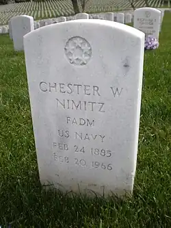 - ^ "Nimitz's Funeral Is Held On Coast; Admiral Declined Arlington Burial to Lie With Men". The New York Times. 25 February 1966. Retrieved 3 June 2018.