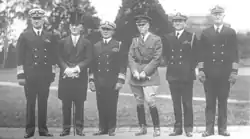 From May 1919 to June 1920, Nimitz served as executive officer of the battleship South Carolina. He then commanded the cruiser Chicago with additional duty in command of Submarine Division 14, based at Pearl Harbor, Hawaii. Nimitz, assisted by four earnest Chief Petty Officers, supervised the construction of Submarine Base Pearl Harbor on a triangle-shaped, overgrown piece of land at the juncture of Southeast Loch and Quarry Loch, and served as the base's first commanding officer.[12] During this tour, he also conducted an investigation into the R-14 sailing incident. Nimitz's handling of the disciplinary action in the aftermath of the investigation was considered a model of even-handed fairness, cementing his reputation as a solid and capable leader.[13] Returning to the mainland in the summer of 1922, Nimitz studied at the Naval War College, Newport, Rhode Island.