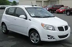 The Aveo 5-door hatchback was marketed as the "Aveo5" in Canada since its inception and in the US beginning with model year 2007. The models were sold as Pontiac Wave (4-door and 5-door, since the 2005 model year) and Suzuki Swift+ (5-door) in Canada. The T200 Wave sedan was replaced for the 2007 model year with the T250, coinciding with the release of the 2007 T250 Aveo. For the 2009 model year, Pontiac Wave was renamed to Pontiac G3 Wave in Canada. In the United States, Pontiac sold the 5-door hatchback as the Pontiac G3 starting in the spring of 2009. Because of General Motors phasing out the Pontiac brand, the Pontiac G3/Wave is no longer manufactured after the 2010 model year, and the last Pontiac G3 Wave rolled off the line in December 2009, making this the last overall Pontiac vehicle to roll off the line, even though the last Pontiac for the American market was the 2010 Pontiac G6. The Pontiac G3 has the distinction of being the last Pontiac-badged model introduced to the United States market before the brand's 2010 demise. For the 2010 model year, Canadian models are simply referred to as Pontiac G3.