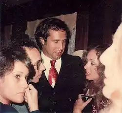 Before performing a third-season episode of Saturday Night Live in 1978,[91] Chase got into a fistfight with Bill Murray in John Belushi's dressing room. It occurred when Chase returned to host the show after his exit as a full-time cast member in 1976. Murray had reportedly made a derogatory comment about Chase's troubled marriage to Jacqueline Carlin, leading Chase to criticize Murray's physical appearance. The fight was reportedly witnessed by musician Billy Joel,[92] and by cast members Jane Curtin, Laraine Newman, and Gilda Radner.[93] In a talk show appearance in 2021, Newman noted of the altercation, "it was very sad and painful and awful." She added, "I think they both knew the one thing that they could say to one another that would hurt the most and that's what I think incited it."[94] Chase and Murray later reconciled with the help of Harold Ramis[91] and starred in Caddyshack in 1980.[94][91]