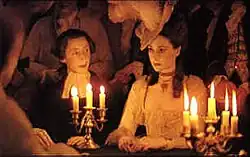 Perhaps the most direct use of chiaroscuro in filmmaking is Stanley Kubrick's 1975 film Barry Lyndon.[29] When informed that no lens then had a sufficiently wide aperture to shoot a costume drama set in grand palaces using only candlelight, Kubrick bought and retrofitted a special lens for the purpose: a modified Mitchell BNC camera and a Zeiss lens manufactured for the rigors of space photography, with a maximum aperture of f/0.7. The natural, unaugmented lighting of the sets in the film exemplified low-key, natural lighting in filmwork at its most extreme, outside of the Eastern European/Soviet filmmaking tradition (itself exemplified by the harsh low-key lighting style employed by Soviet filmmaker Sergei Eisenstein).