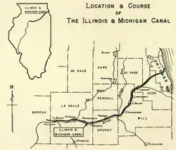 The location and course of the Illinois and Michigan Canal (completed 1848)