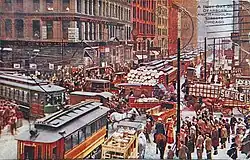 The origin of the name "the Loop" is disputed. Some sources claim it first referred to two cable car lines that used a circuit—constructed in 1882 and bounded by Van Buren Street, Wabash Avenue, Wells Street, and Lake Street—to enter and depart the downtown area.[8][9] Other research, however, has concluded that "the Loop" was not used as a proper noun until after the 1895–97 construction of the Union Loop used by 'L' trains, which shared the same route.[10]