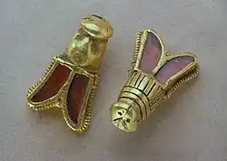 - Photo: Merovingian sword and scabbard mounts from the tomb of King Childeric featuring silver-gilt and cloisonné garnets