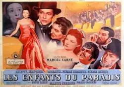 Children of Paradise (French: Les Enfants du Paradis, [lez‿ɑ̃fɑ̃ dy paʁadi]) is a two-part French romantic drama film by Marcel Carné, produced under war conditions in 1943, 1944, and early 1945 in both Vichy France and Occupied France. Set in the theatrical world of 1830s Paris, it tells the story of a courtesan and four men—a mime, an actor, a criminal and an aristocrat—who love her in entirely different ways.