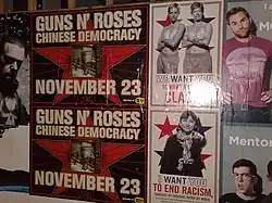 After the album's release, Rose remained out of public view for several months and ignored Geffen's requests to promote it.[191][192] On December 12, he posted statements on fan forums addressing the album, former bandmates, and tour plans.[193][194][195] In a February 9, 2009 interview, Rose said he saw "no real involvement or effort from Interscope".[177] In a 2018 retrospective, Billboard criticized the marketing, calling it "a colossal blunder" that undermined the "most anticipated rock album in history".[97]