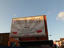 On October 9, Billboard confirmed a November 23, 2008 release date for Chinese Democracy,[169] sold exclusively through Best Buy in the U.S.[170][171] The title track premiered on October 22 via the Opie and Anthony show on KROQ-FM.[172][173] Promotional ads referencing the 2008 United States presidential election aired in early November.[174] "Better" was released as a promo single on November 17,[175] followed by "Street of Dreams" in March 2009.[176]